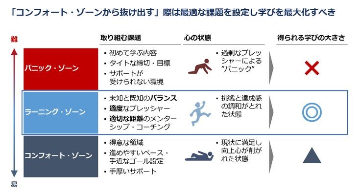 それはパニックゾーン(ストレスゾーン)に入る直前のラーニングゾーン(チャレンジゾー